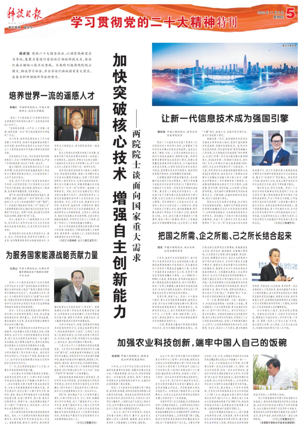 党的二十大报告重点提到“加快实现高水平科技自立自强”“坚持创新在我国现代化建设全局中的核心地位”“集聚力量进行原创性引领性的科技攻关”。我也特别关注到,党的二十大报告中多次提到与“能源”相关的问题,并提出积极稳妥推进碳达峰碳中和,从报告中可以深切体会到我们党对于在能源领域贯彻新发展理念的高度重视。