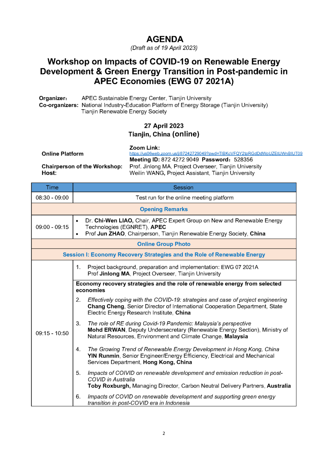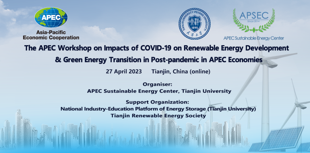 亚太地区作为全球最具发展活力和潜力的地区,新冠肺炎疫情对区域内外的社会经济形势同样产生了重大影响。危机期间,区域内经济生产和社会活动按下暂停键,降低了能源消耗,影响了能源工厂的运营和新项目的开发。APEC区域内的相关经济体也提出经济复苏的刺激计划,支持可再生能源发展。为了深入分析疫情对APEC区域可在生能源发展的影响,支持APEC各经济体可再生能源发展的信息交流和经验分享,帮助和加快APEC经济体的绿色复苏和在后疫情时期的清洁能源转型,“新冠疫情对APEC经济体可再生能源发展影响及后疫情绿色能源转型”研讨会将于2023年4月27日由天津大学APEC可持续能源中心主办,天津大学国家储能技术产教融合创新平台及天津可再生能源学会联合举办。